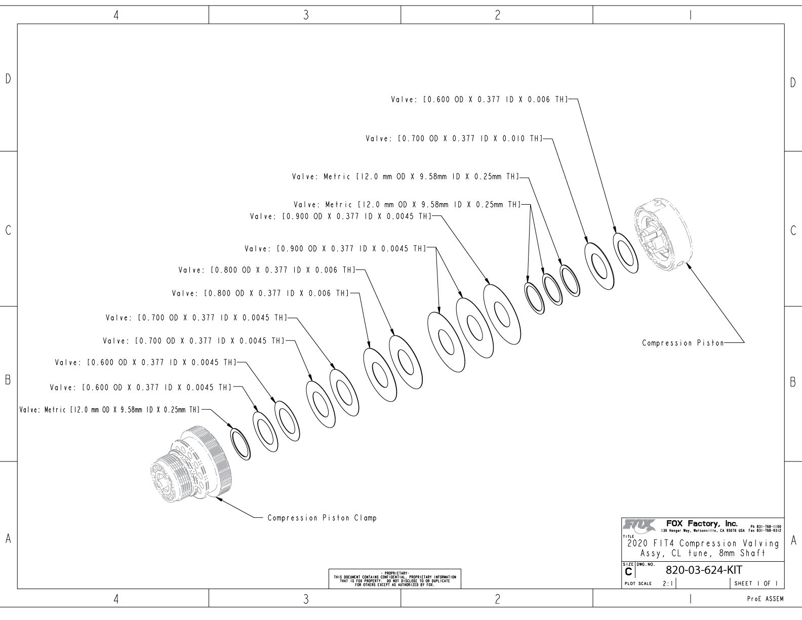 - 820-03-624-KIT 2020 FIT4 Compression Valving Assy, CL tune, 8mm Shaft