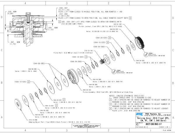 | 807-06-160-KIT | Service Set: Valving Assy: 2016 Float DPS, CM, RF, CMF [.940 Bore] |