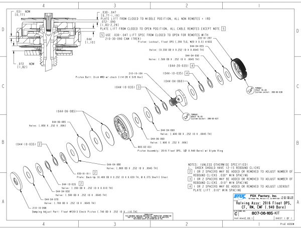 | 807-06-165-KIT | Service Set: Valving Assy: 2016 Float DPS, CF, RM, CMF [.940 Bore] |