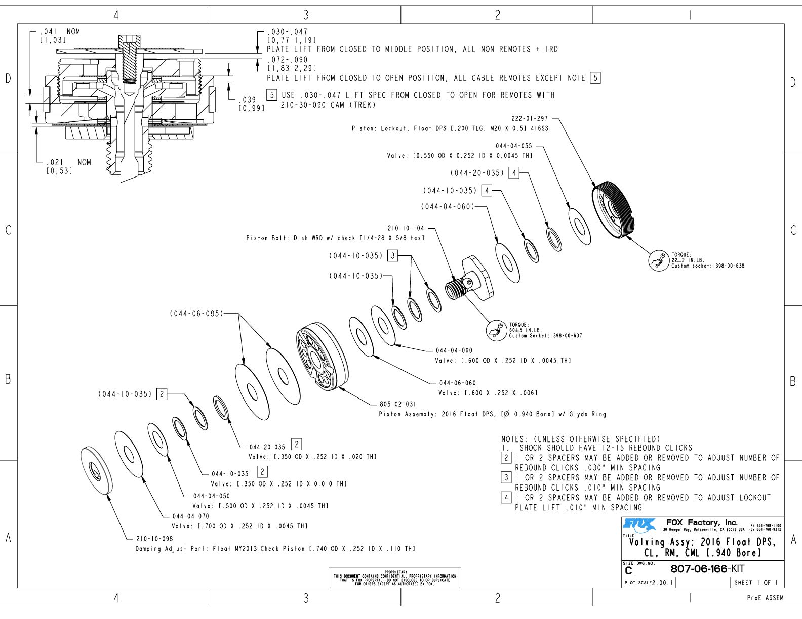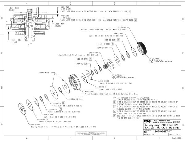 | 807-06-166-KIT | Service Set: Valving Assy: 2016 Float DPS, CL, RM, CML [.940 Bore] |