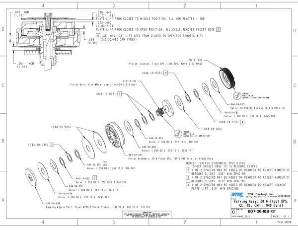 | 807-06-168-KIT | Service Set: Valving Assy: 2016 Float DPS, CL, RL, CMF [.940 Bore] |
