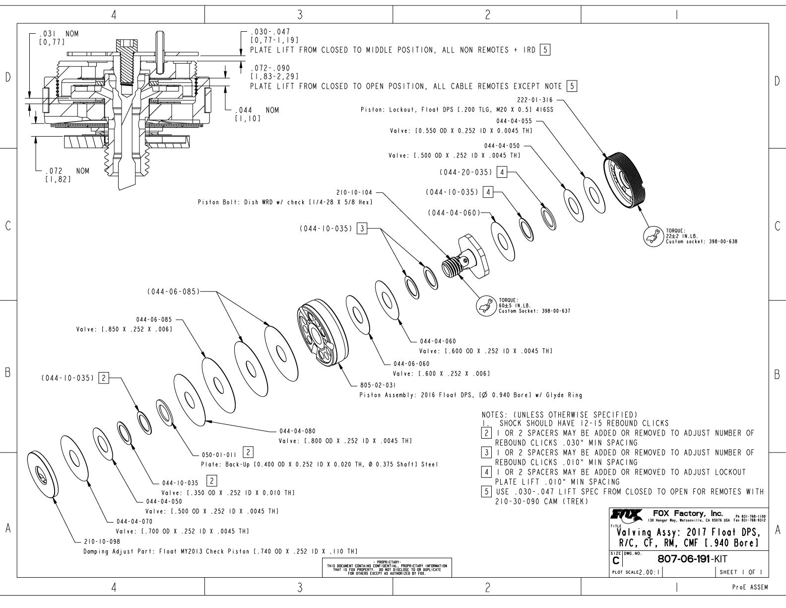 - 807-06-167-KIT Valving Assy: 2016 FLOAT DPS CL, RM, CMF