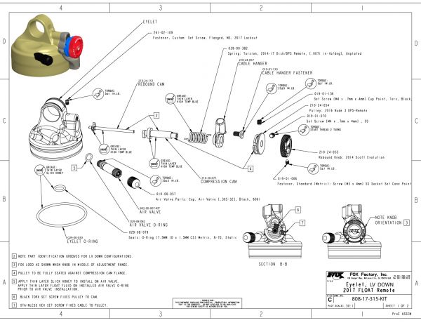 | New Remote Parts | Revised pulley, cable hanger, rebound knob, cam, piston, tri-lobe plate (2016 update kit coming soon) |