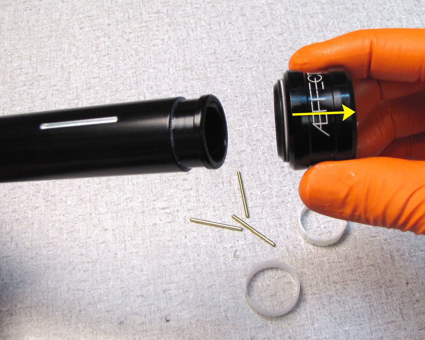 Carefully clamp the outer post in a clean bicycle work stand then unthread the Actuator Assembly counter-clockwise with smooth-jawes parallel pliers (Knipex). Pull the Actuator Assembly up out of the outer post.