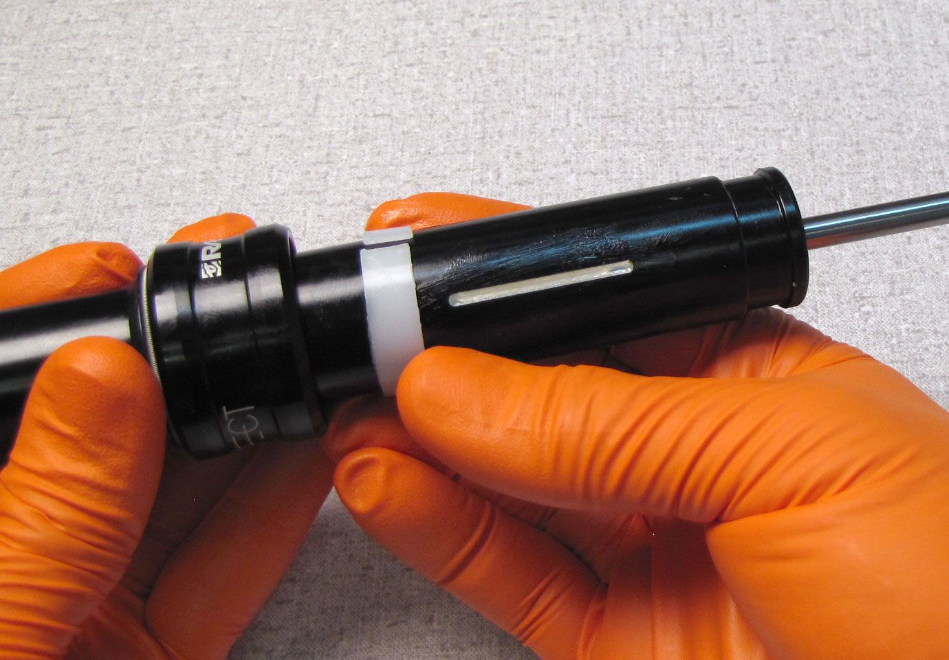 Coat the inside of the Wiper seal with a thin film of Slick Honey then reinstall the Lower Post Collar onto the Upper Post as shown.