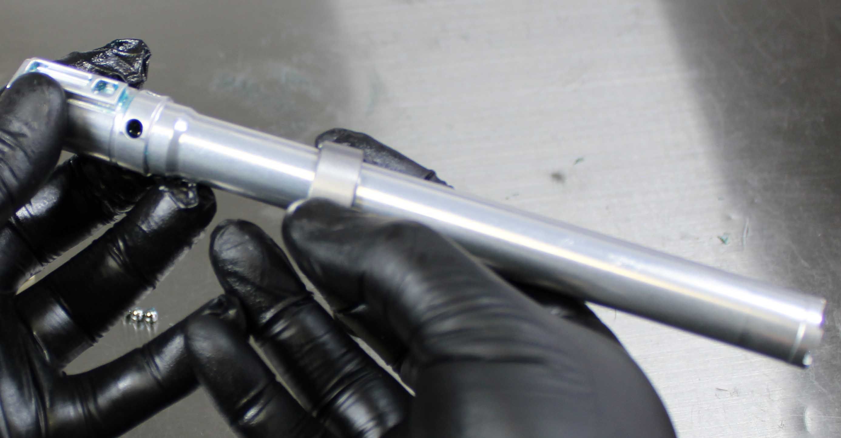 Separate the upper post from the lower post by pulling them apart over your workbench. Note the positions of the 4 carbon spring guides, then remove them.