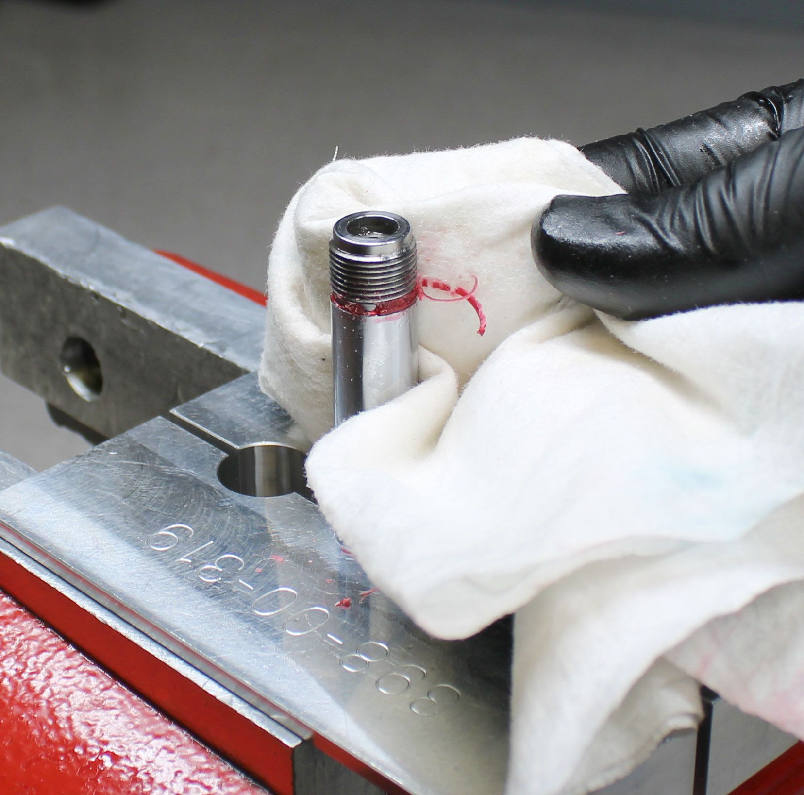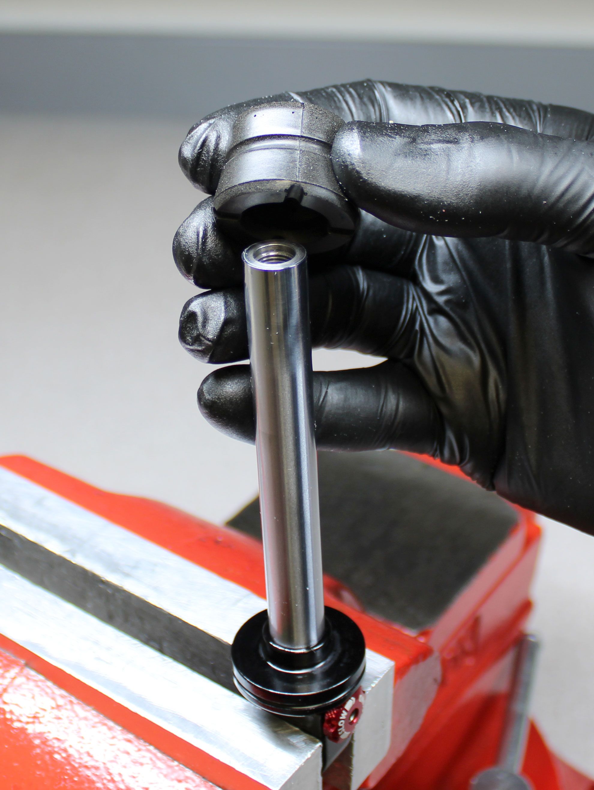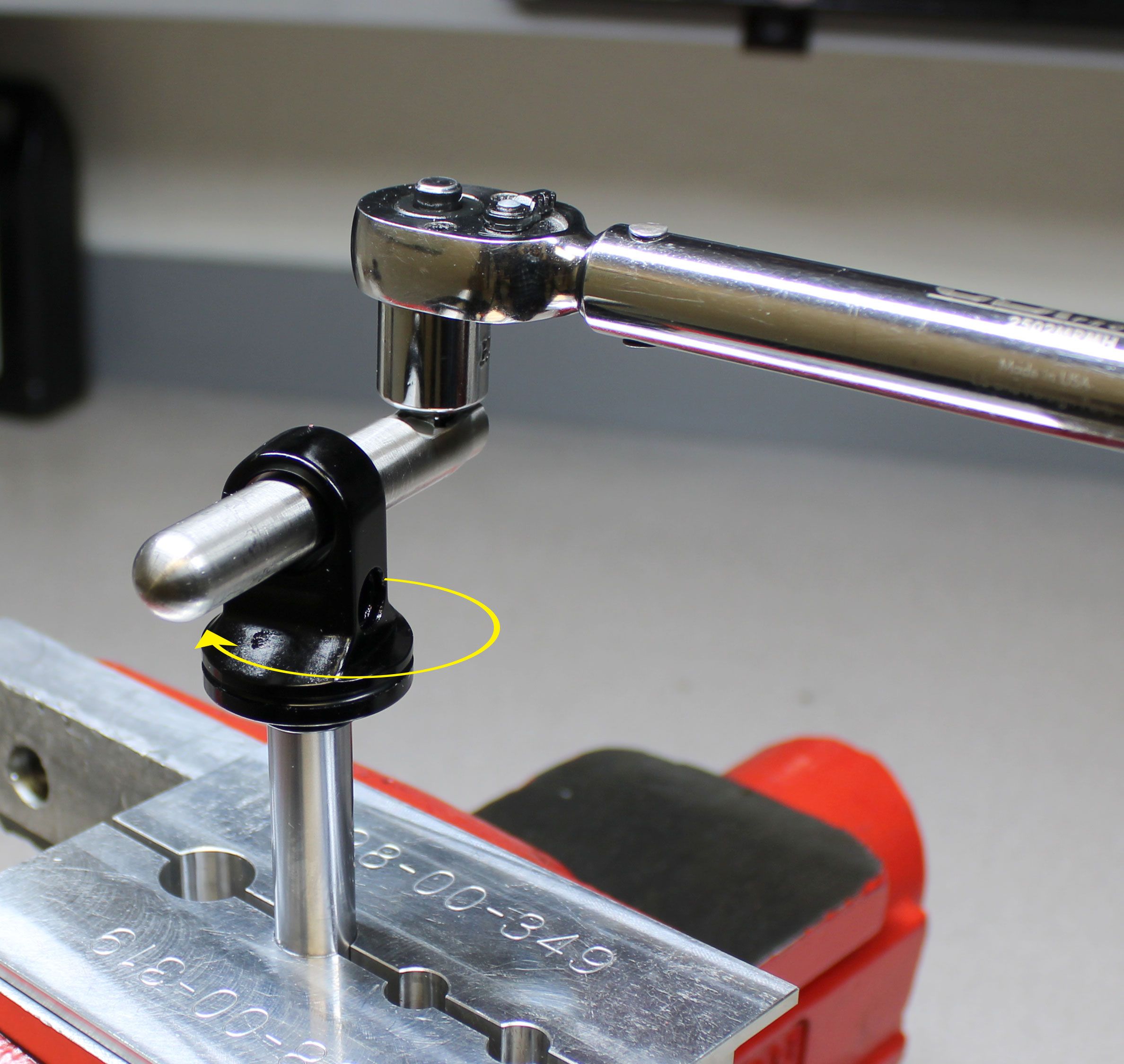 Clean the shaft with isopropyl alcohol and a lint-free paper towel, then clamp the shaft in your shaft clamps with the eyelet up. Carefully apply heat to the Shaft Eyelet with a propane torch then unthread the Shaft Eyelet counter-clockwise to remove. Be careful as the Eyelet and Shaft may be hot!