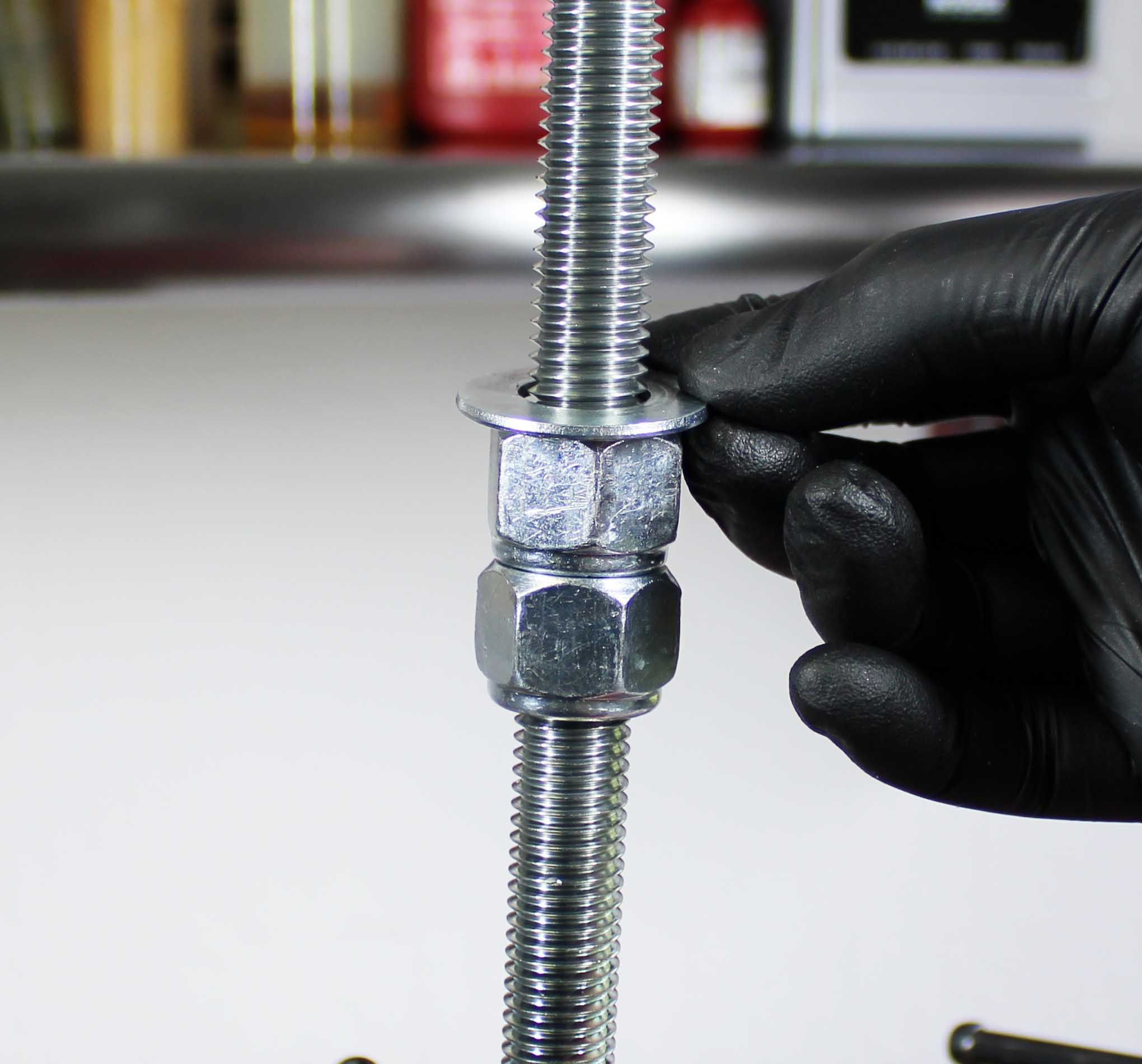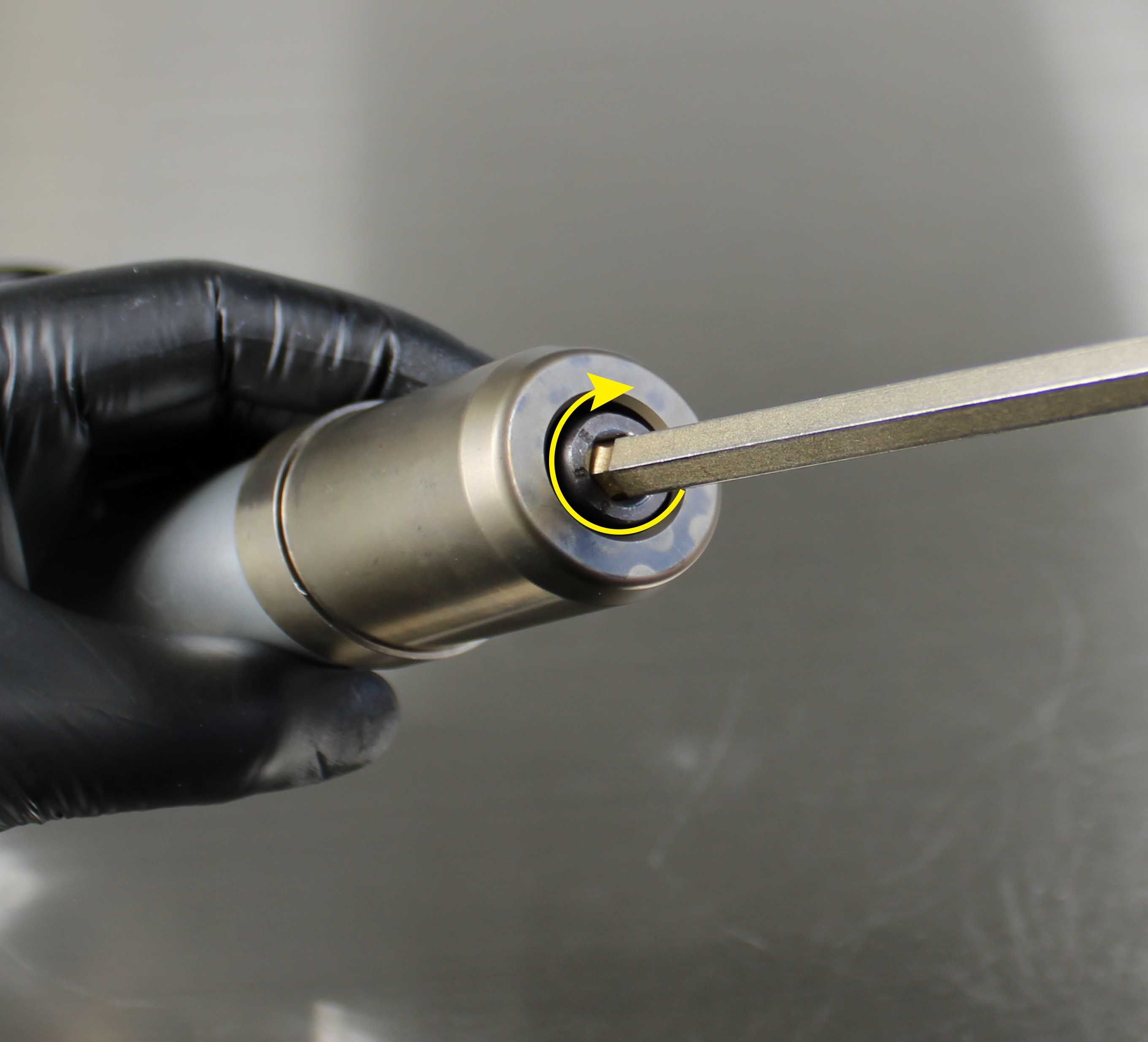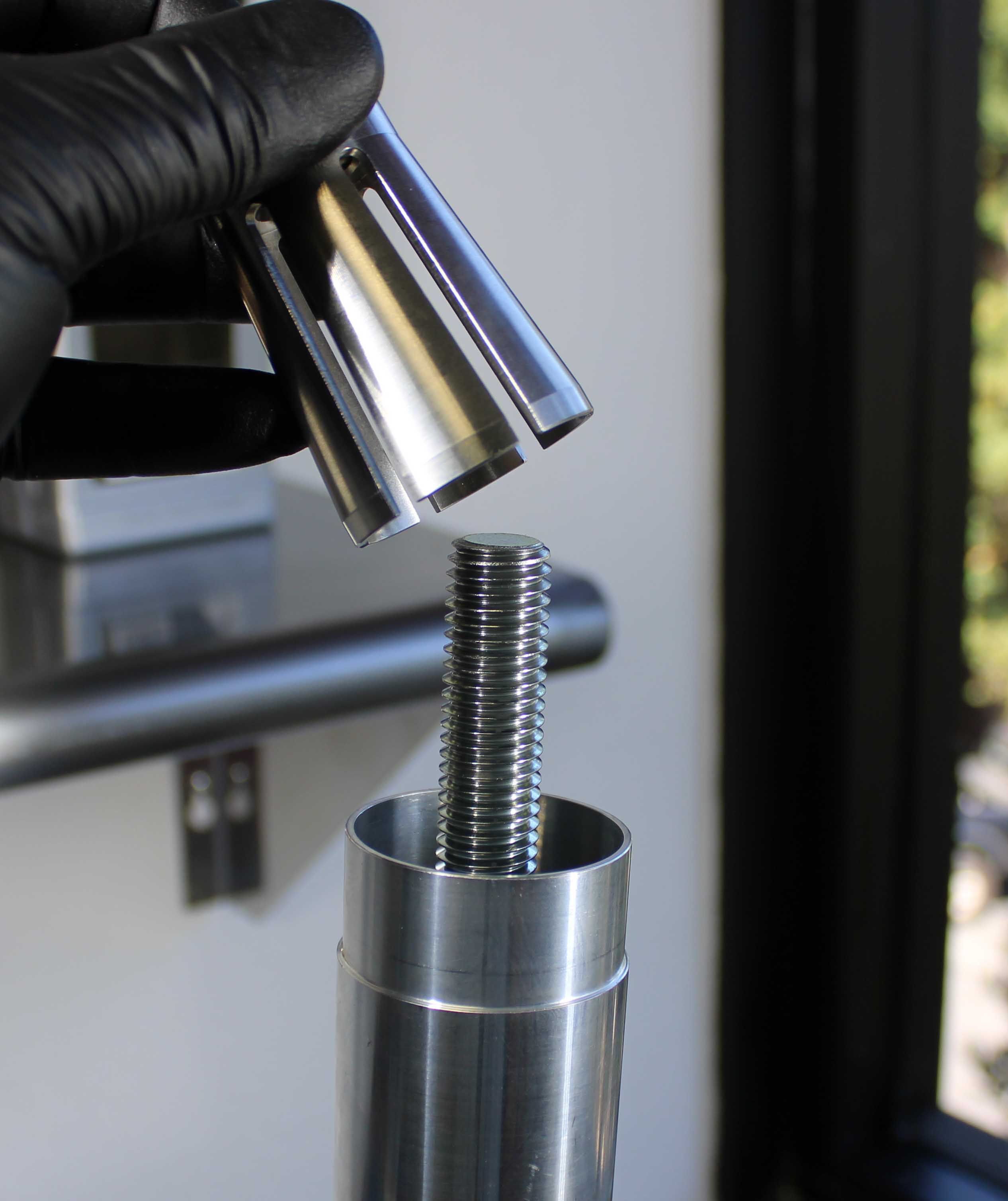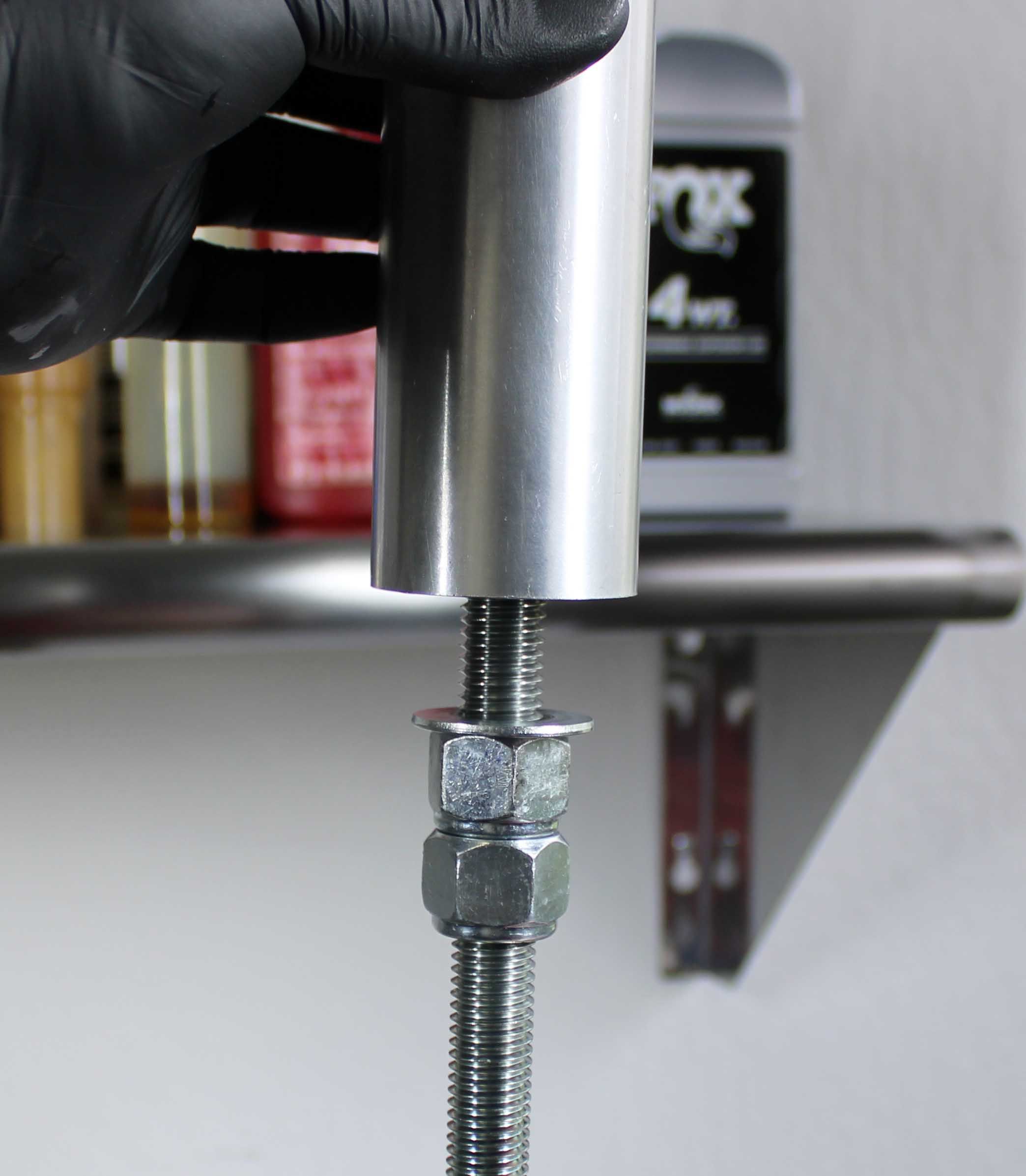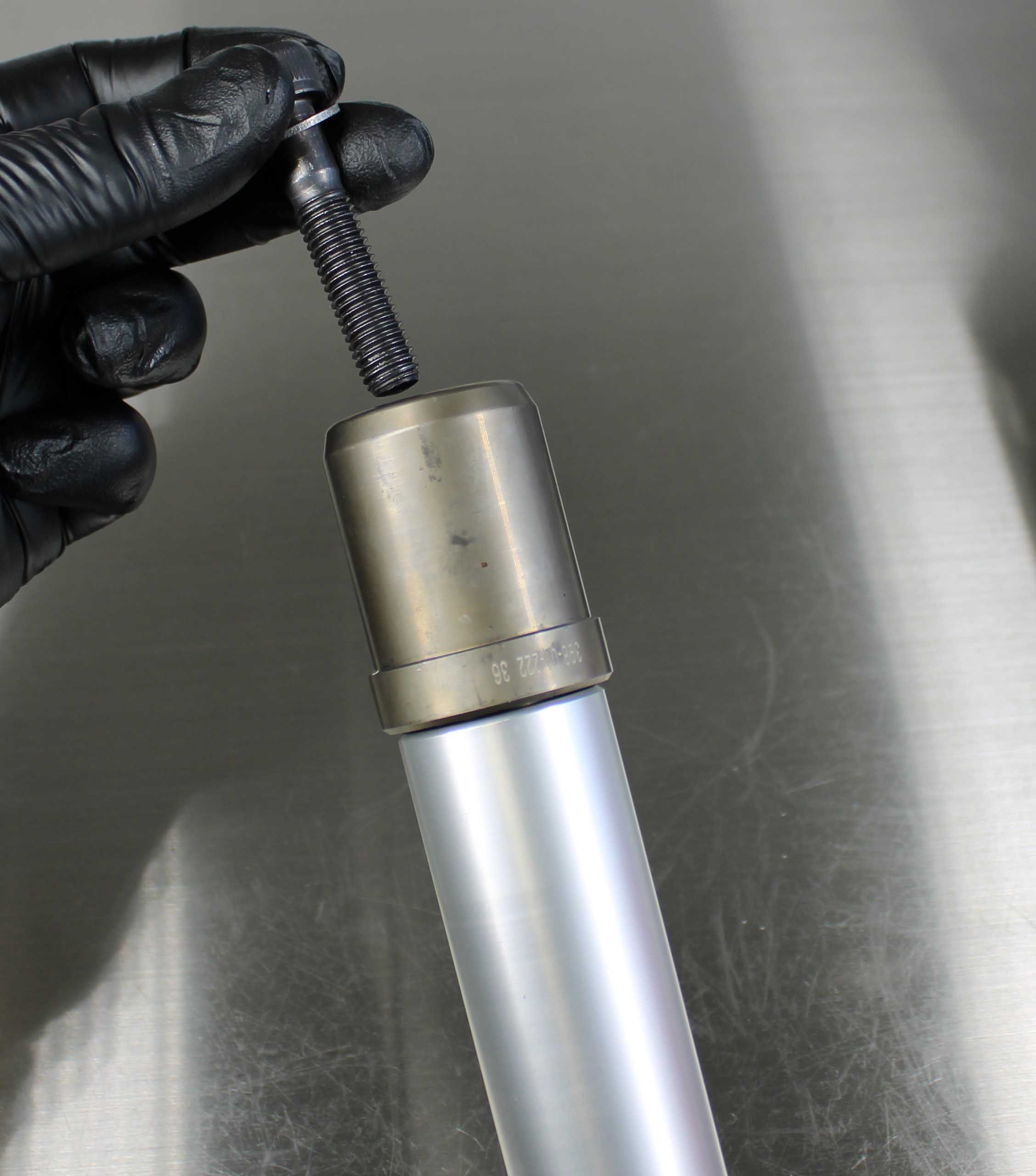 Install the correct Installation Tip and Guide Ring based on the Fork family. The Installation Tip and Guide Ring are engraved with fork family. Install Guide Ring first (with the small diameter end closest to the installation Tip), then the Installation Tip. Use a 8mm allen to tighten the M10 screw until the Installation Tip is sercured into the shank.