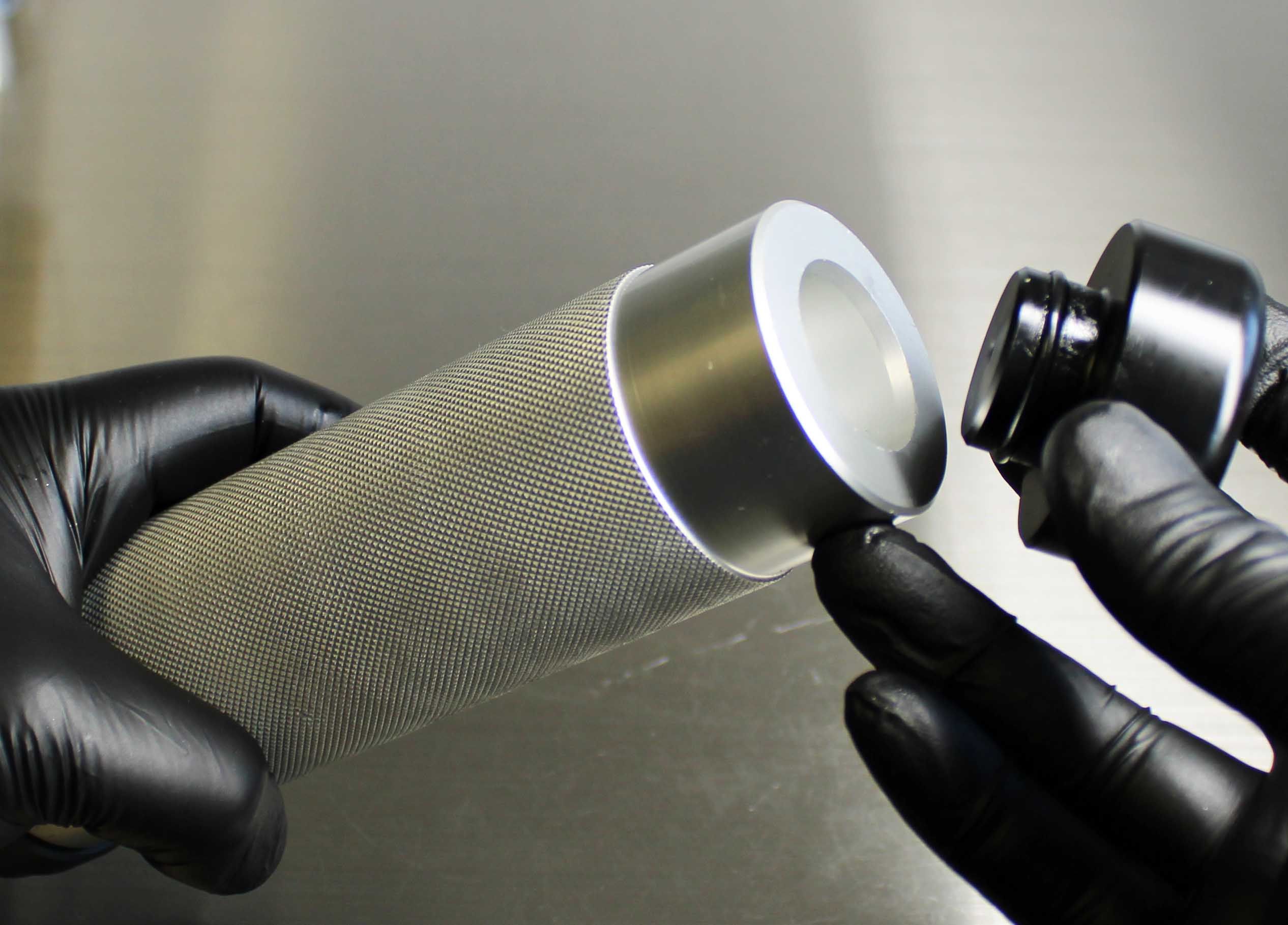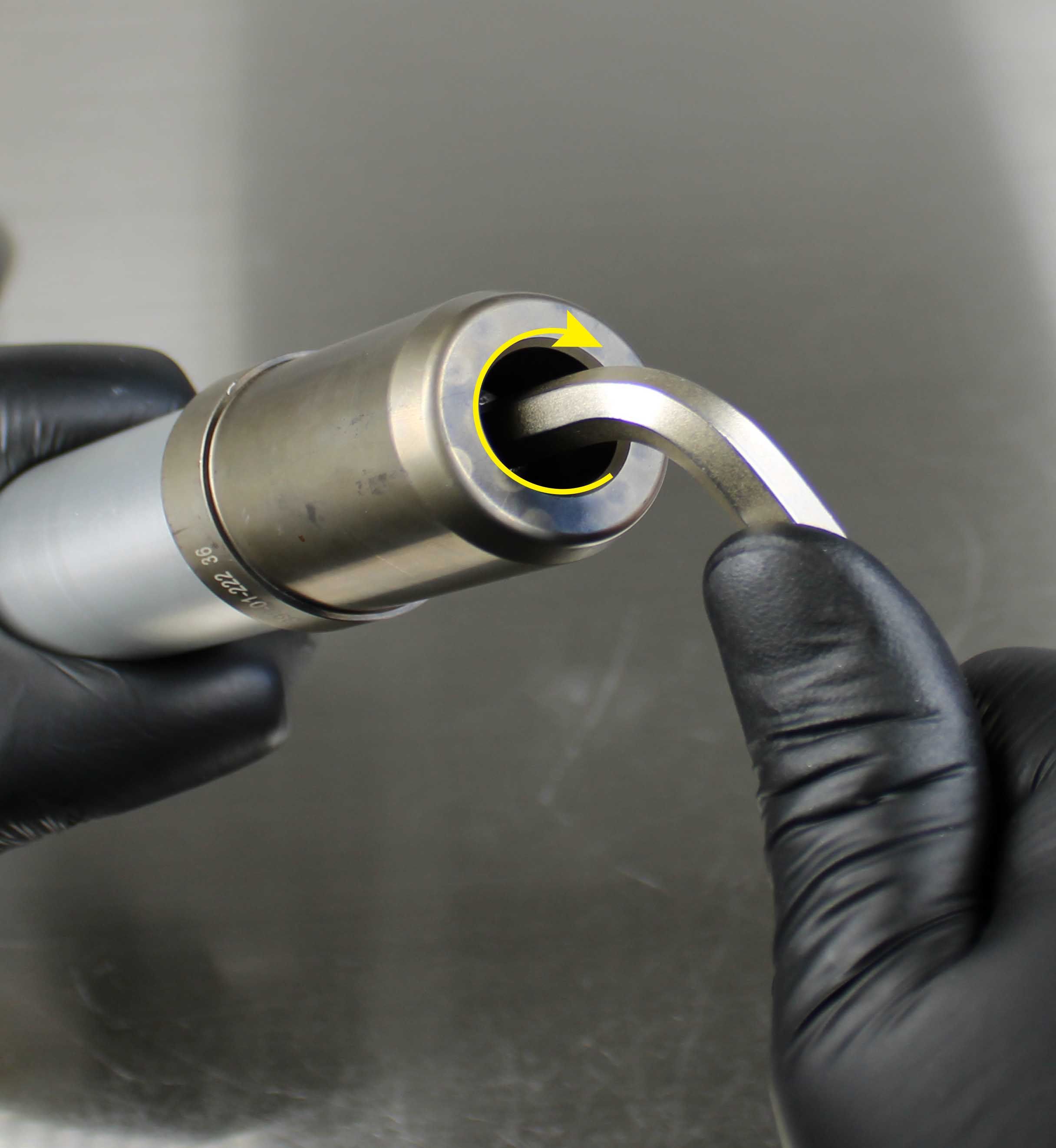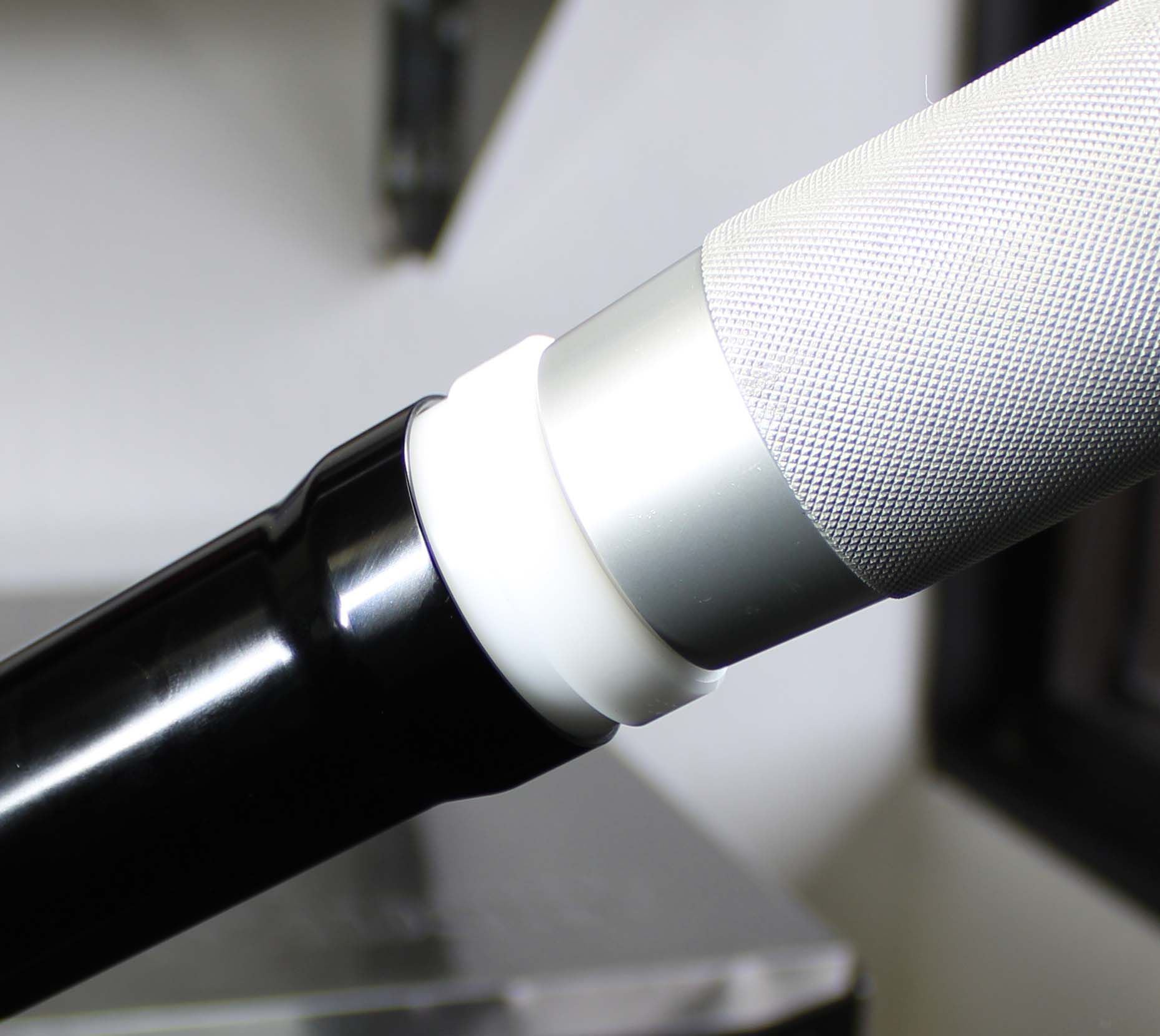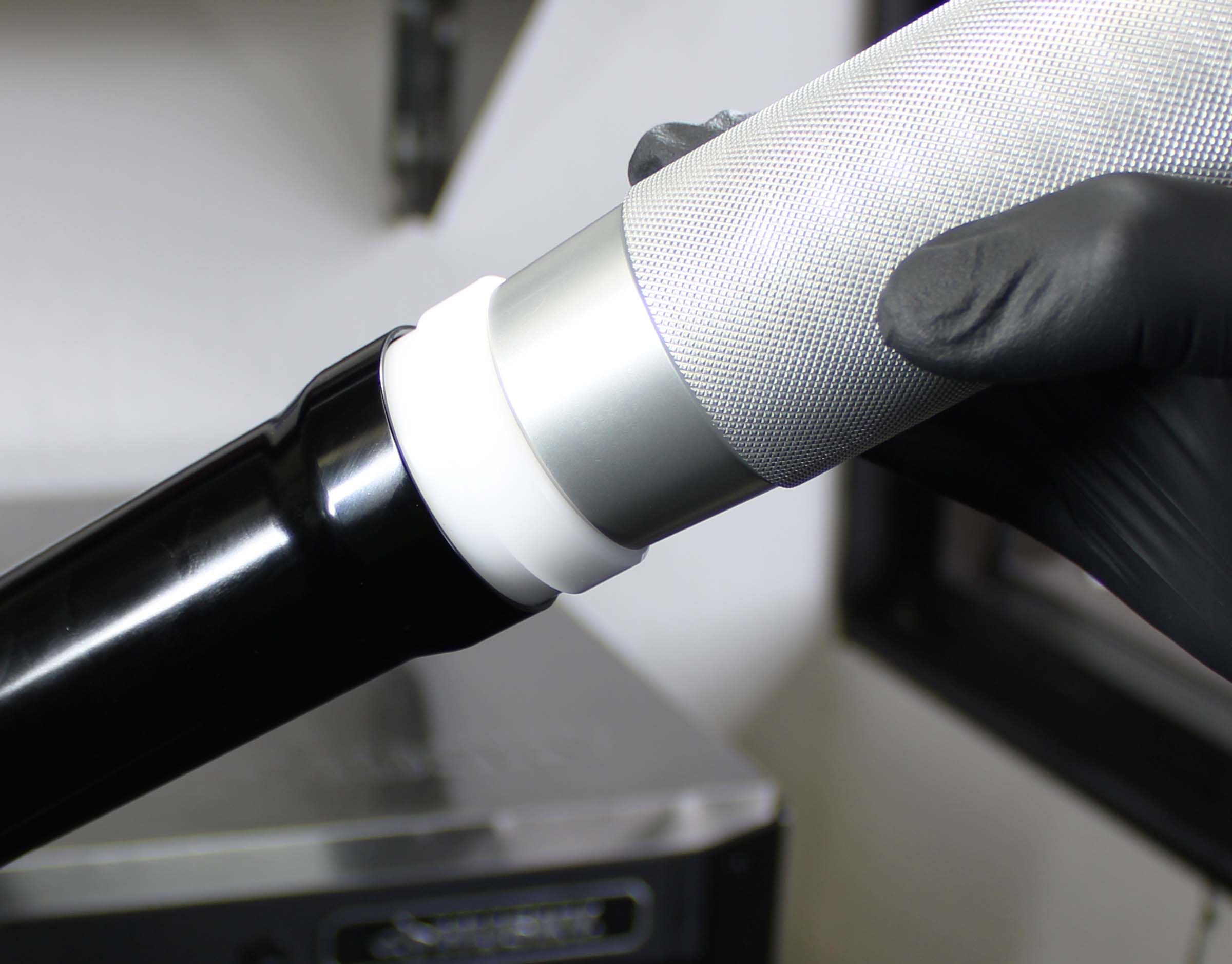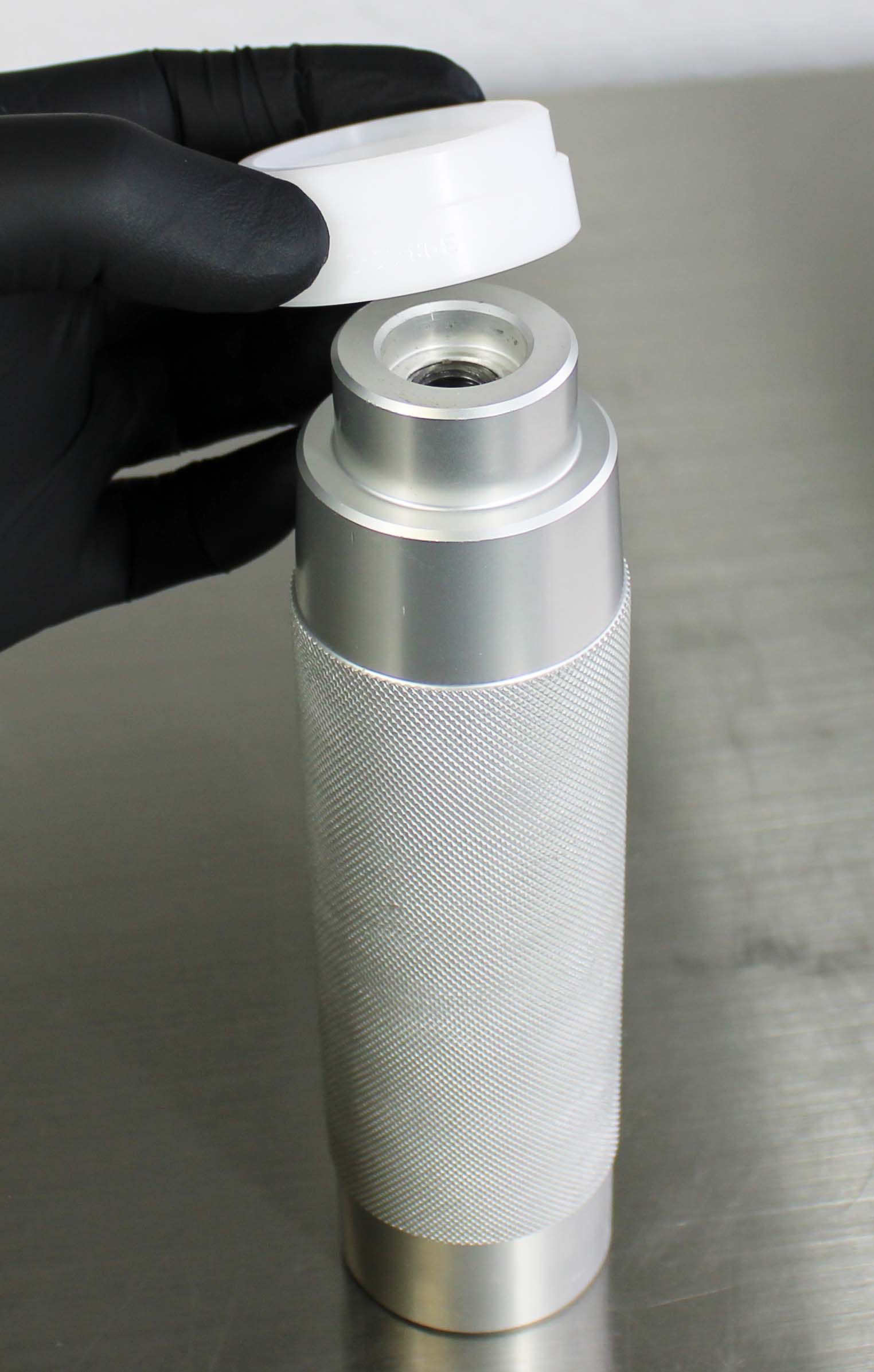 Once the Installation Tip and Guide Ring is installed, the depth can be verified by measuring from the tip of the Installation Tip to the lip of the Guide Ring. Note: All lower bushings require a depth of 15.25mm. NO SPACERS REQUIRED. Insert the Hammer Cap into the Handle. The tool is now assembled.