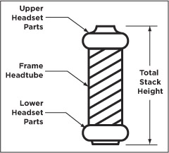 See Figure 1: 40 Headset Stack Height to understand what defines total stack height. Measure to verify whether your total stack height falls within this height range specification.