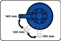 Von der 100- oder 120-mm-Position ausgehend müssen Sie den Hebel im Uhrzeigersinn drehen, um den Federweg zu verlängern. Der Federweg wird in 20-mm-Schritten verlängert. Drehen Sie den Hebel nicht über die 140-mm-Position hinaus.