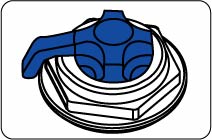 Halten Sie den TALAS-Hebel mit einer Hand fest, während Sie mit der anderen die Luftkappe aufschrauben. Dadurch lässt sich die Luftkappe leichter entfernen und wird gleichzeitig vermieden, dass der TALAS-Hebel über die Anschläge hinaus gedreht wird.