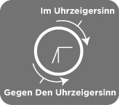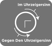 Eine Bewegung im Uhrzeigersinn (auch: nach INNEN) verläuft von oben nach rechts, nach unten, nach links und wieder zurück nach oben. Umgekehrt verläuft eine Bewegung gegen den Uhrzeigersinn (auch: nach AUSSEN) von oben nach links, nach unten, nach rechts und wieder zurück nach oben.