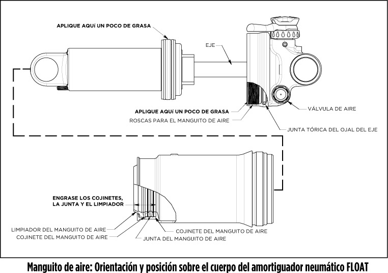 de aire en el cuerpo del amortiguador. No atornille todavía el manguito