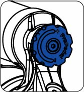 Gire el mando totalmente en sentido horario para aumentar la resistencia a tocar fondo y en sentido antihorario para disminuirla. Hay tres giros de ajuste y tres líneas indicadoras del ajuste en el depósito.
