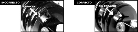 Una instalación defectuosa del muelle podría provocar una avería prematura, ocasionando la pérdida de control de la bicicleta, y posiblemente lesiones graves o incluso mortales. En las figuras siguientes se muestra la orientación correcta e incorrecta del muelle. La orientación correcta del muelle se aplica a todos los amortiguadores traseros FOX Racing Shox que utilizan muelles helicoidales: