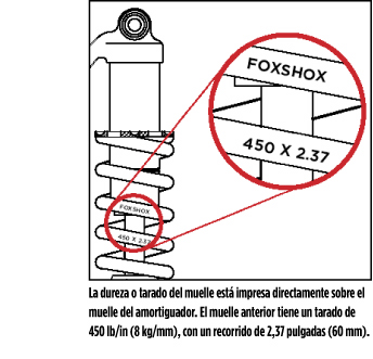 Si una vez que el anillo de precarga haya encajado con el muelle necesita más de dos vueltas completas en sentido horario para conseguir el hundimiento adecuado, deberá obtener un muelle más rígido.