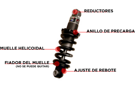 Si una vez que el anillo de precarga haya encajado con el muelle necesita más de dos vueltas completas en sentido horario para conseguir el hundimiento adecuado, deberá obtener un muelle más rígido.
