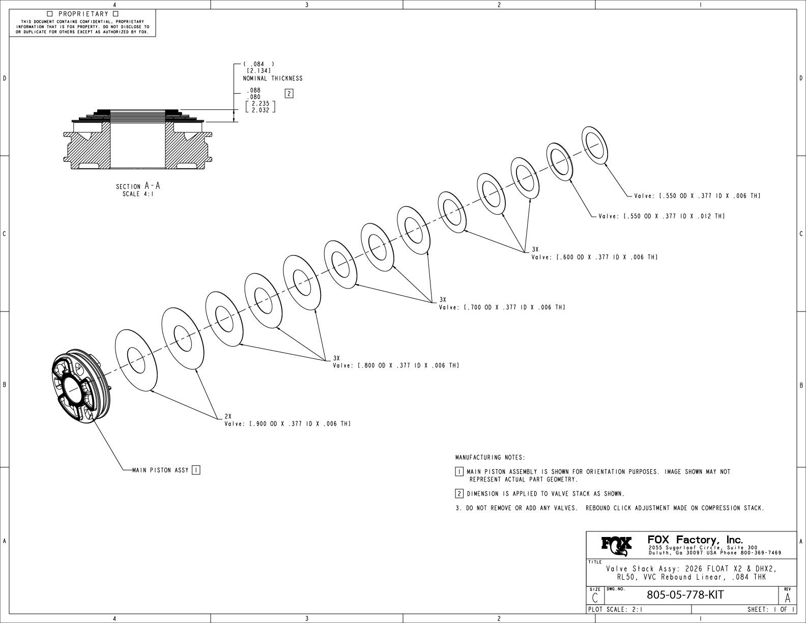 | 805-05-778-KIT | Service Set: Valve Stack Assy: 2026 FLOAT X2 & DHX2, RL50, VVC Rebound Linear, .084 THK |