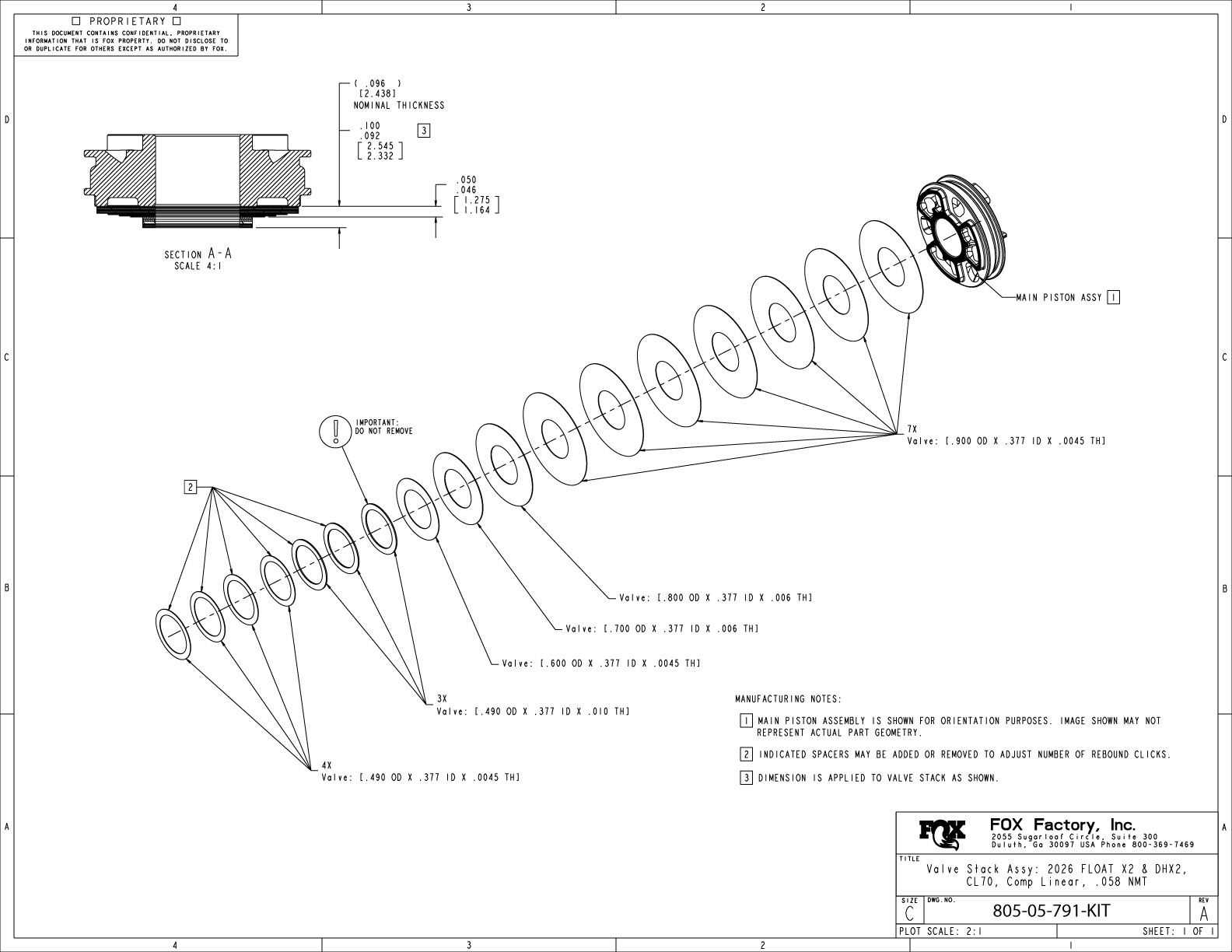 | 805-05-750-KIT | Service Set: Valve Stack Assy: 2026 FLOAT X2 & DHX2, RL70, VVC Rebound Linear, .084 THK |