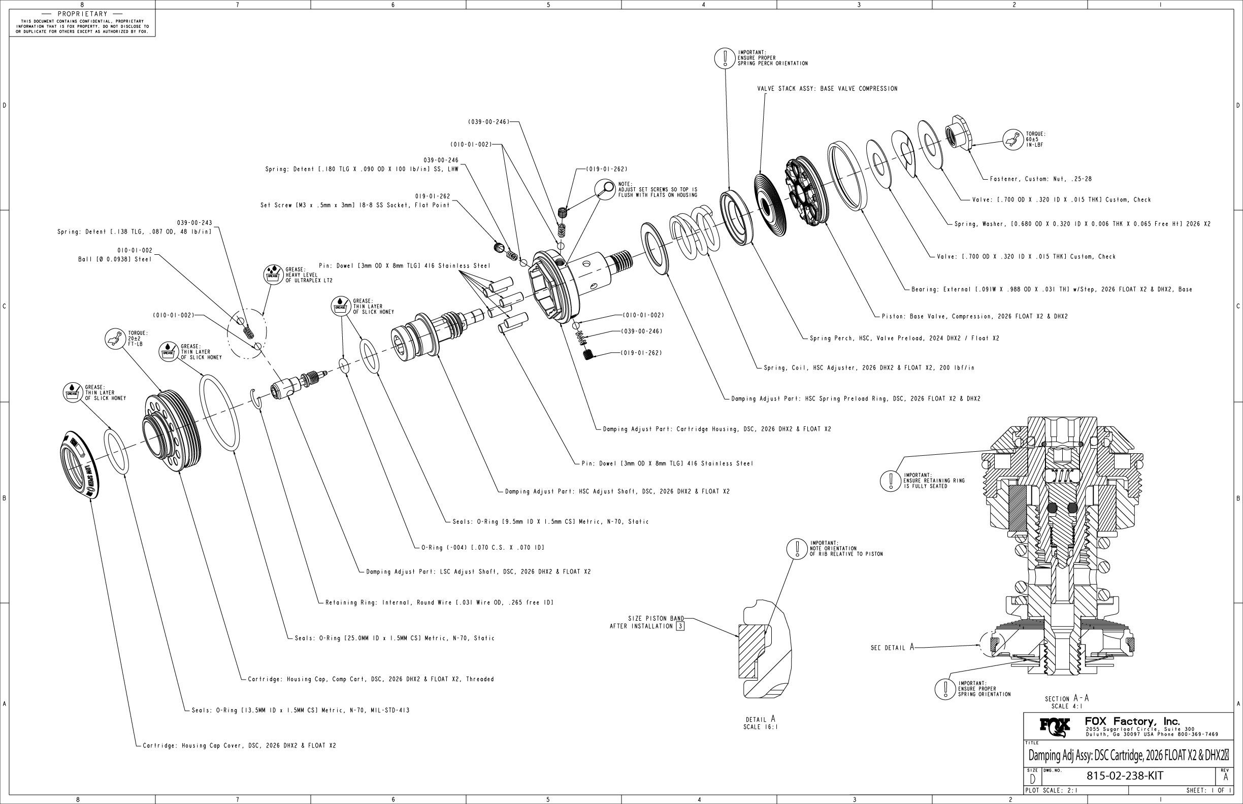 | 815-02-238-KIT | Service Set: Damping Adj Assy: DSC Cartridge, 2026 FLOAT X2 & DHX2 |